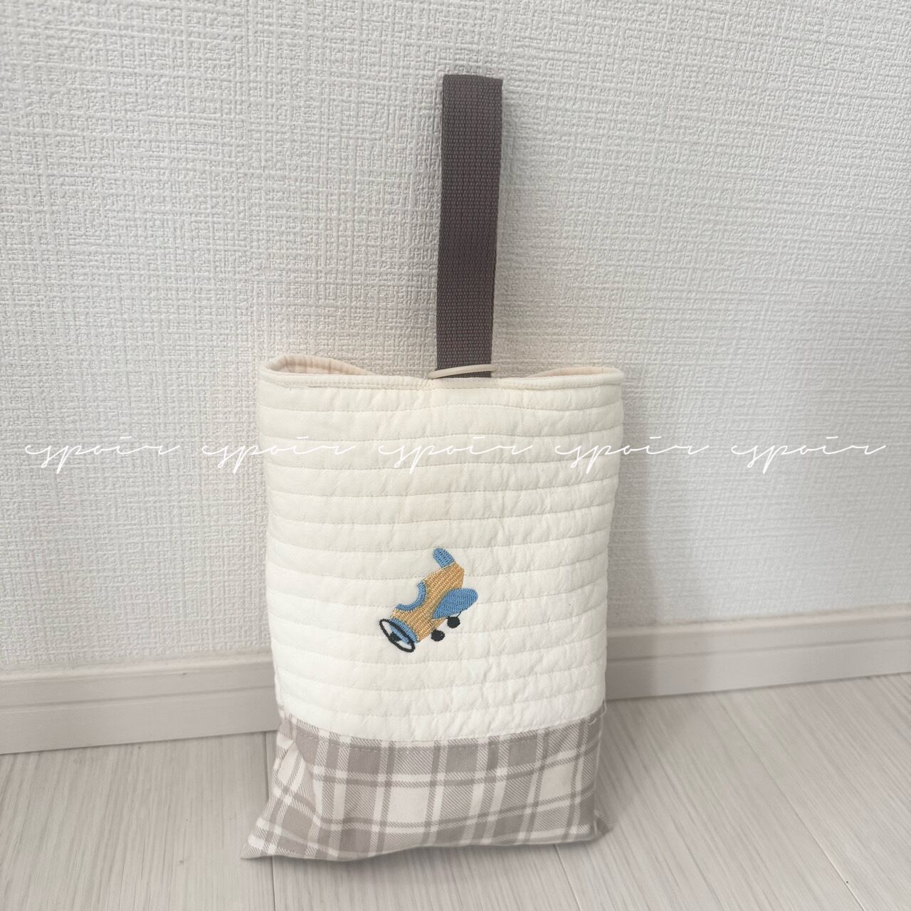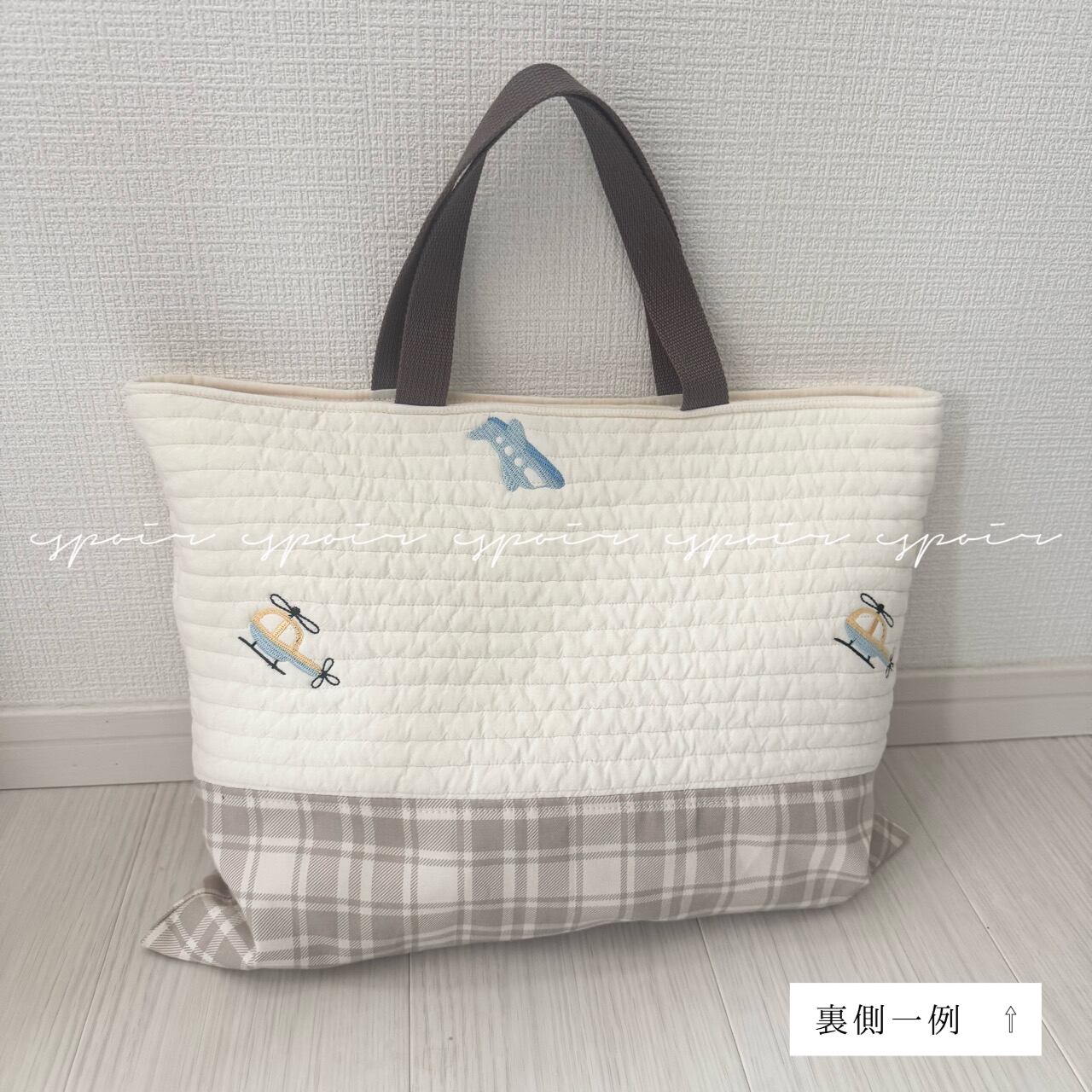 ナチュラルな空飛ぶ乗り物たちが刺繍されています。