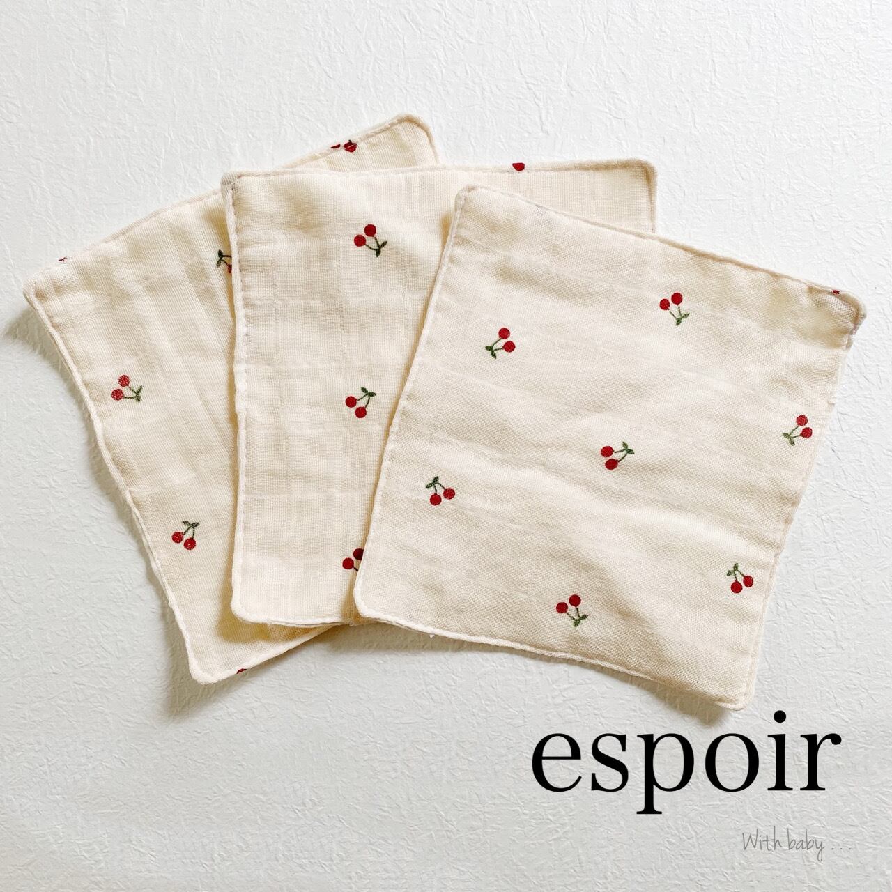 【handmade/BABYno18】ミニさくらんぼ/チェリー/ガーゼハンカチ3セット