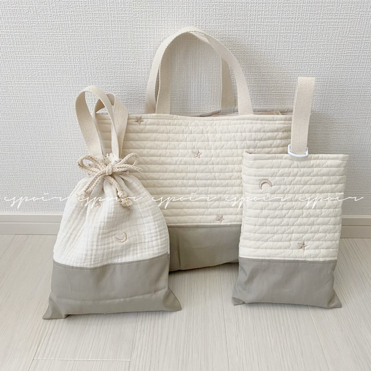 【送料無料】入園入学3点セット(星&月柄)ベージュ