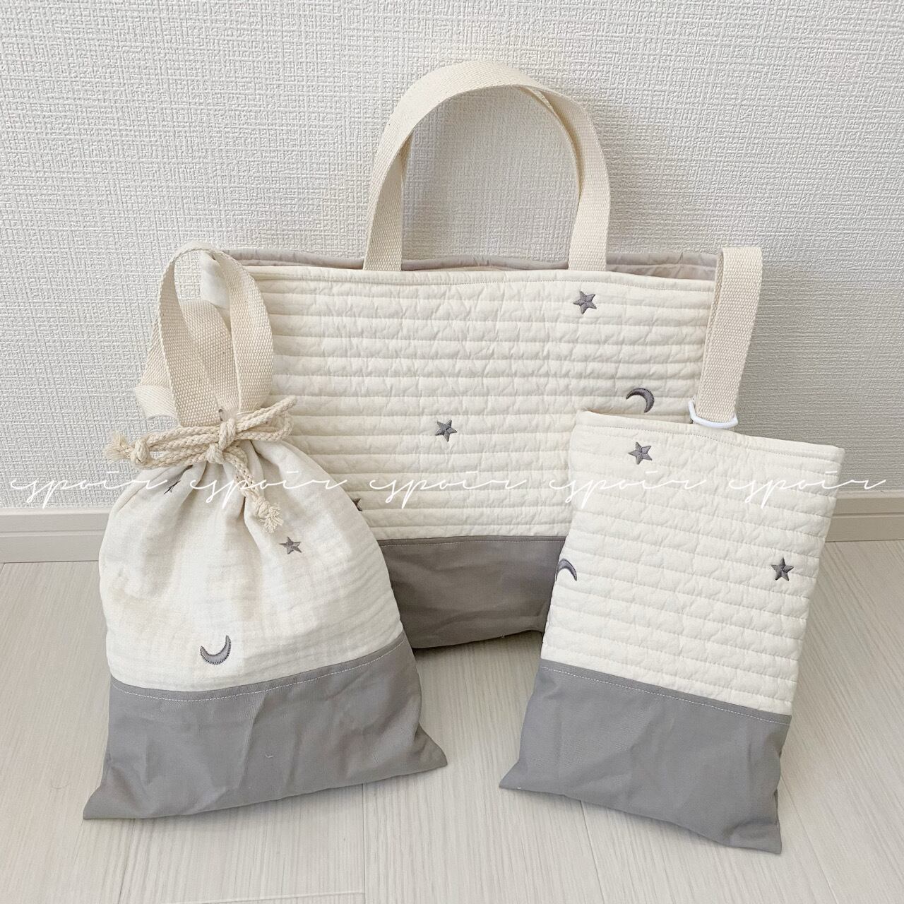 入園入学/レッスンバッグ・通園バッグ(星月・グレー柄)
