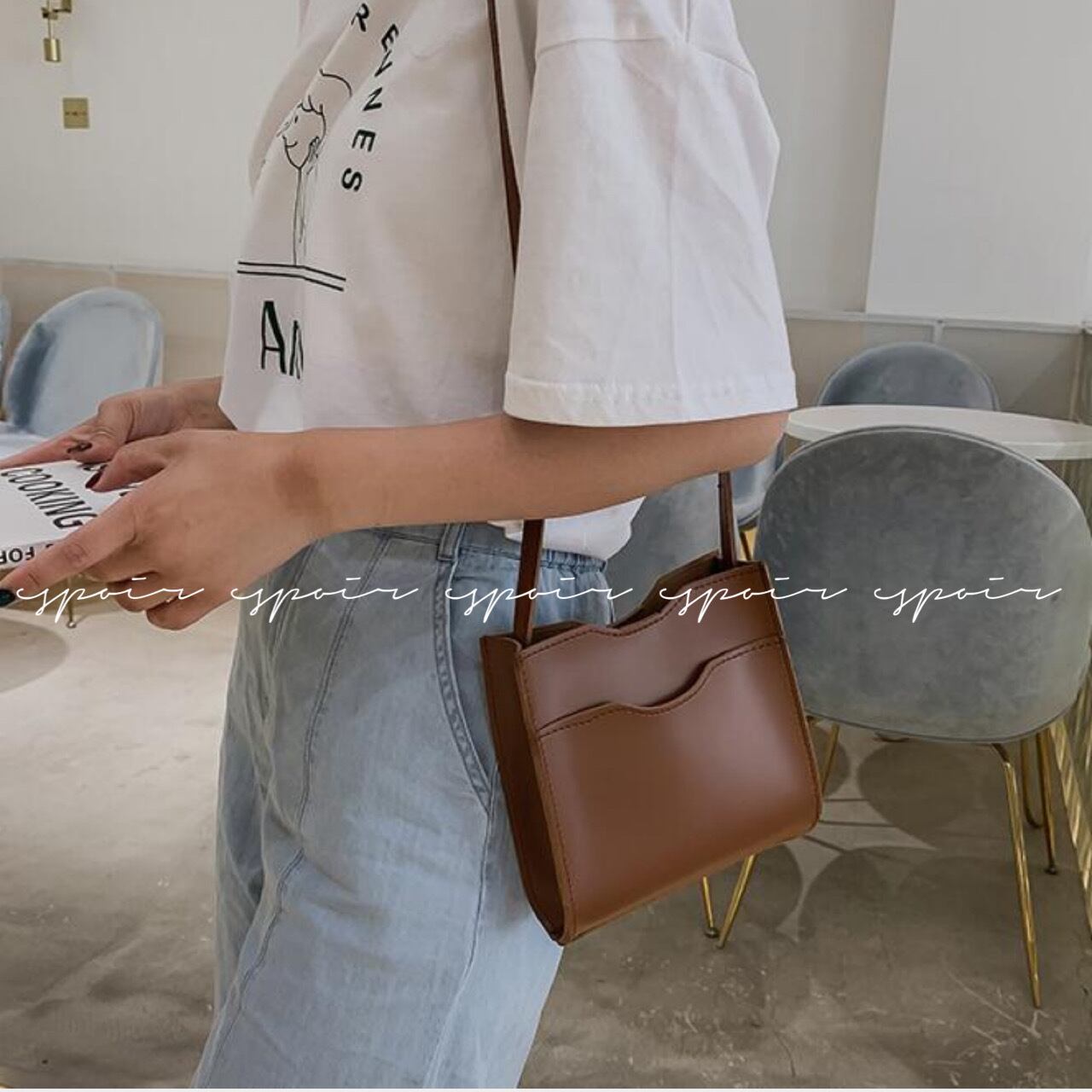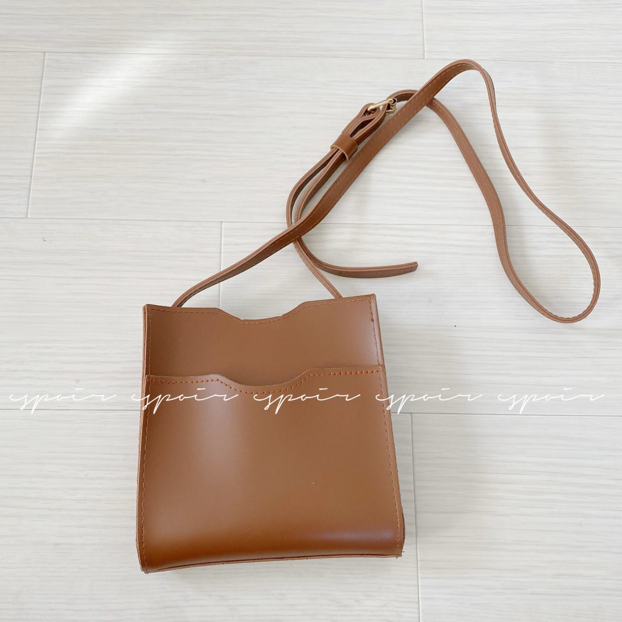 どんなコーディネートにもマッチするようなシンプルなミニショルダーバッグ。