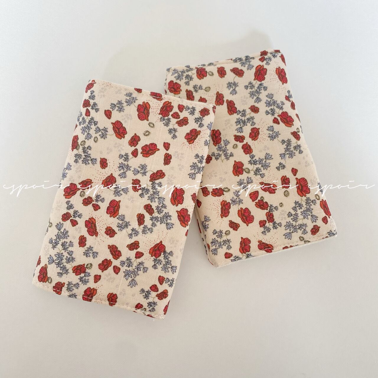 赤と青のお花の可愛いデザインの生地で