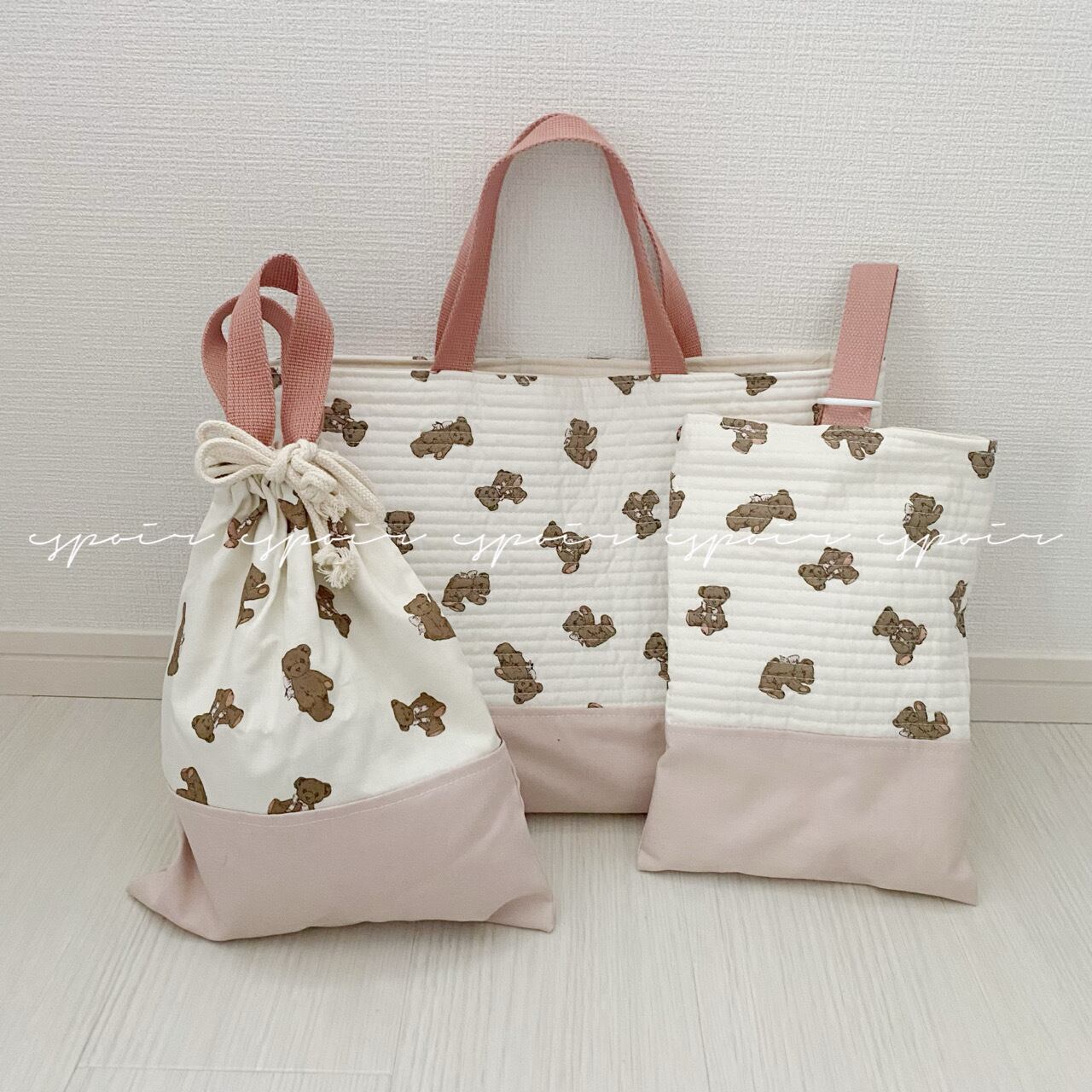 入園入学/レッスンバッグ・通園バッグ(テディベア・ピンクくま柄)