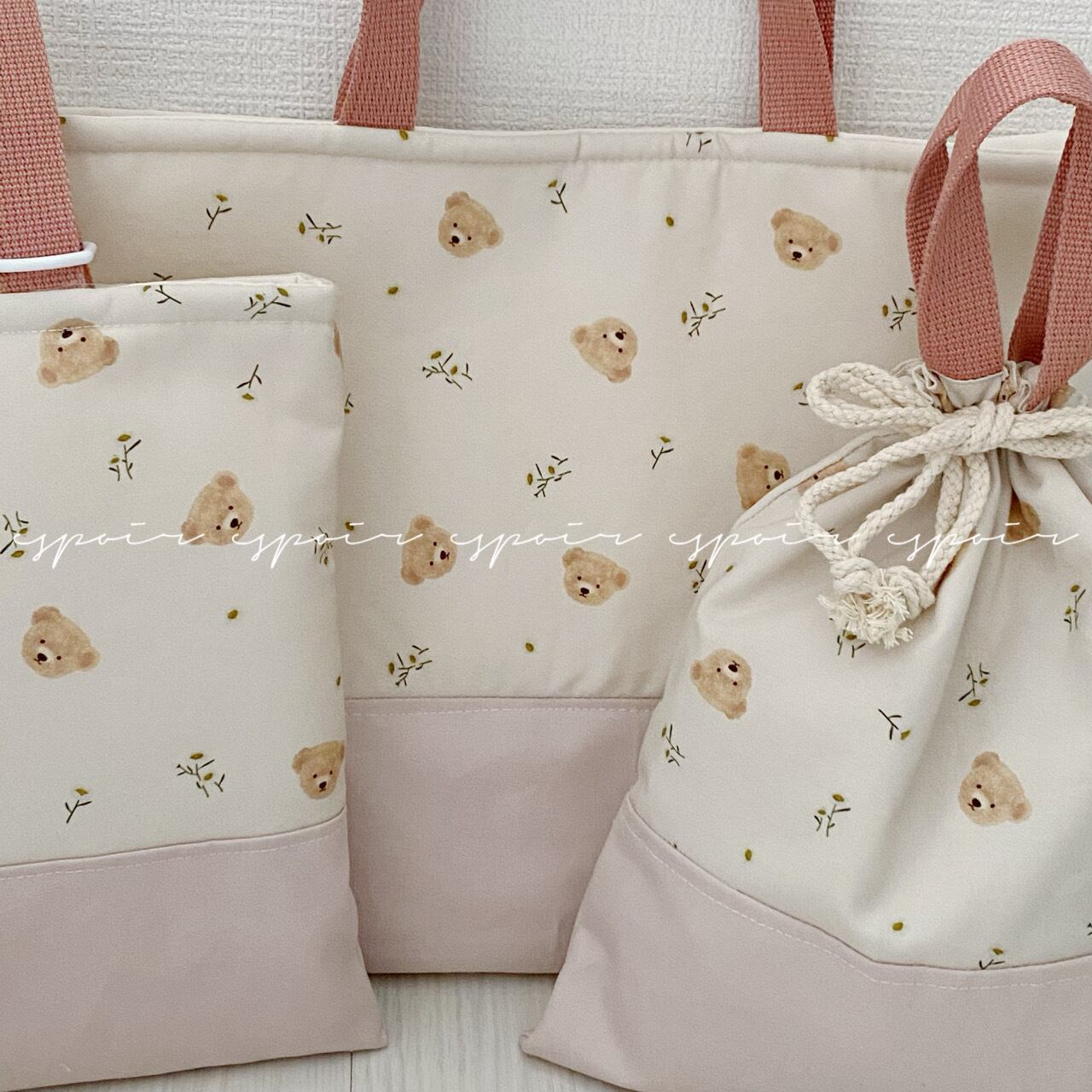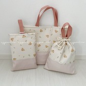 入園入学/上履き入れ・シューズケース(花とくま・くすみピンク)