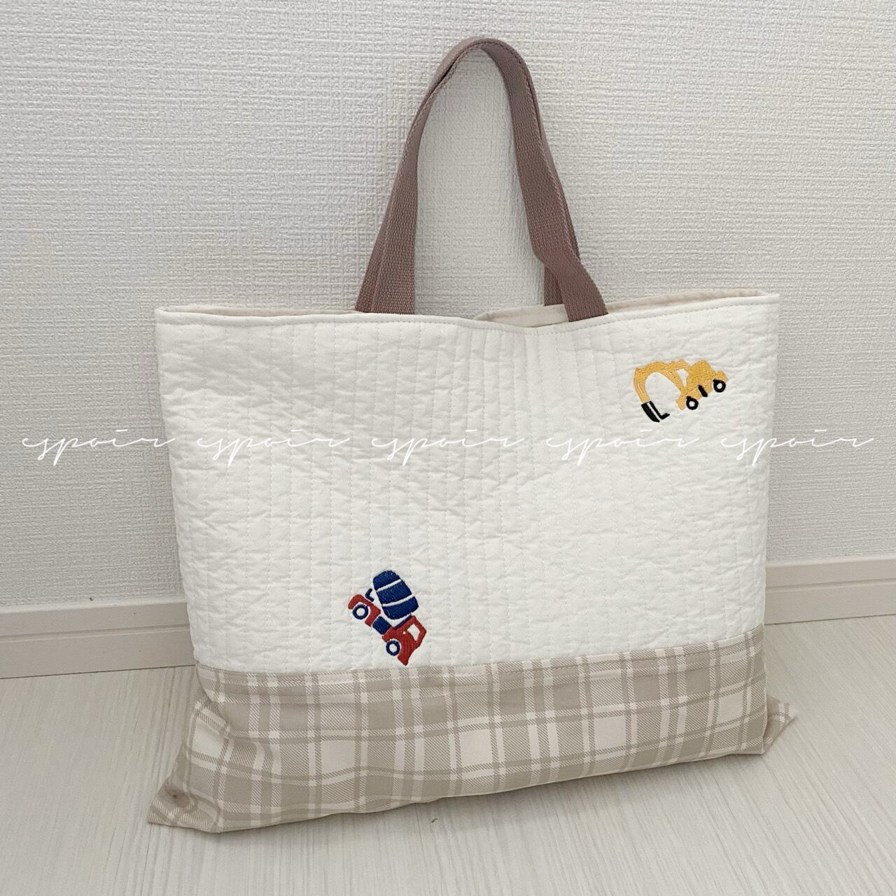 【はたらくくるま】を刺繍しております。