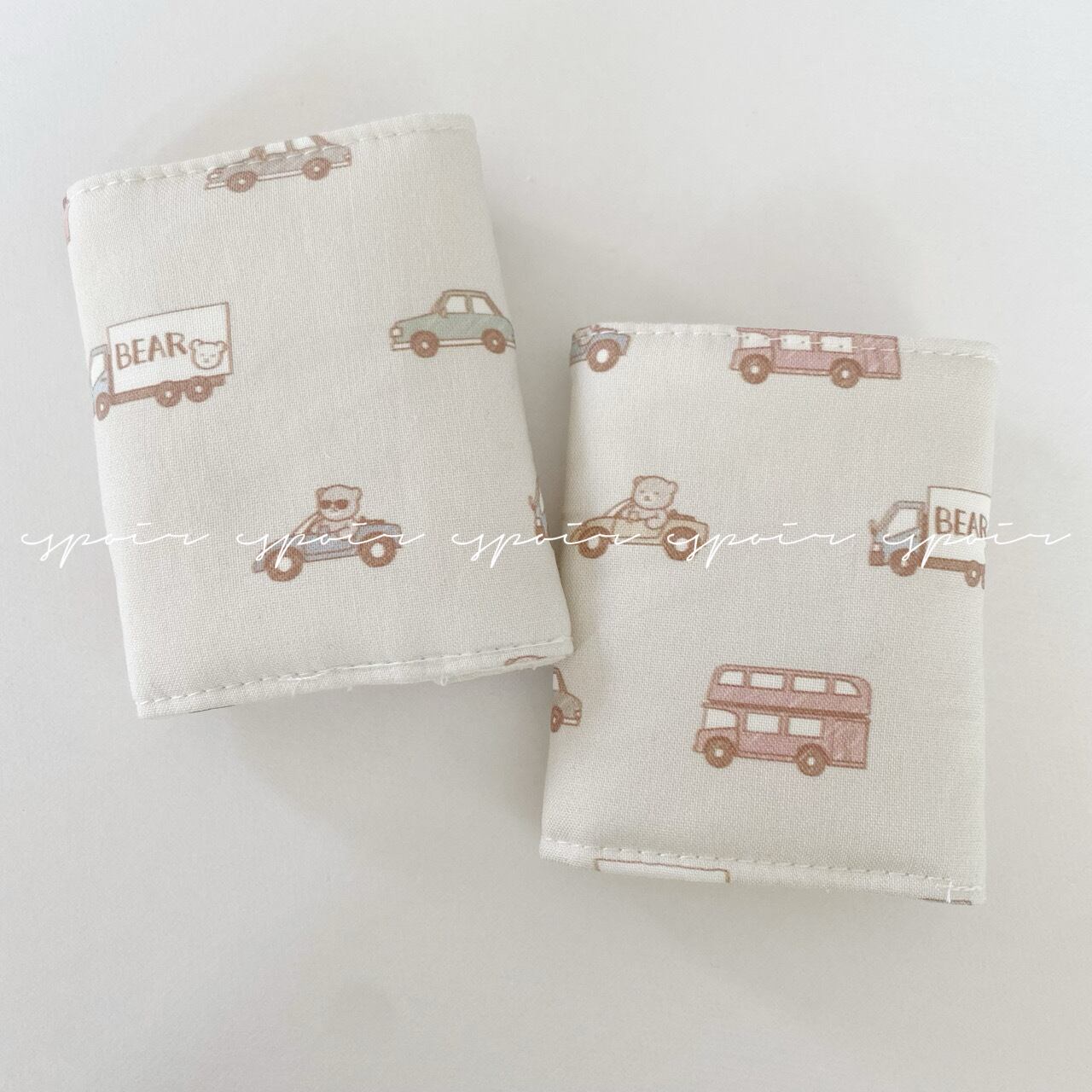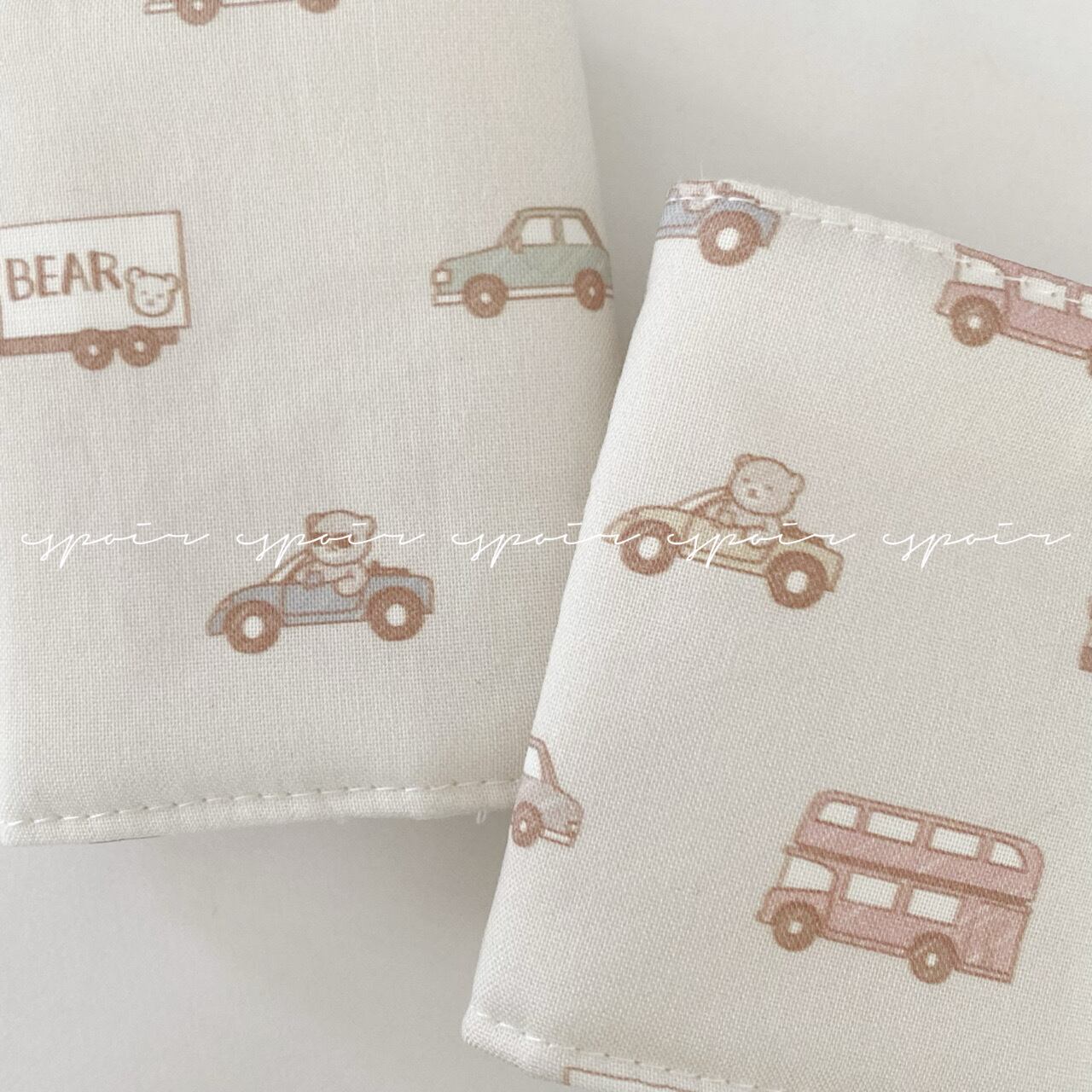 くすみカラーベースのくまとくるまの生地を使用した