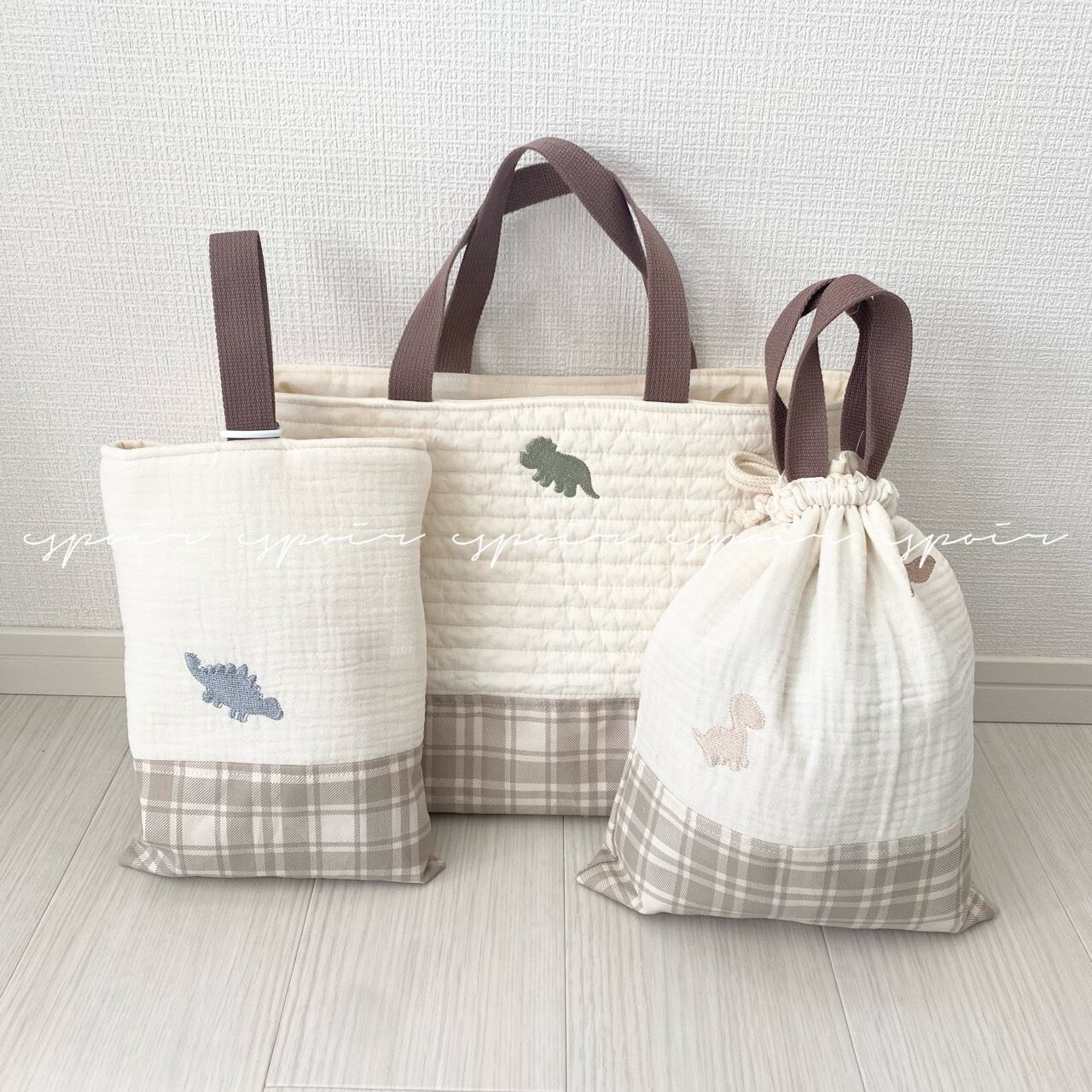 入園入学/シューズバッグ/靴入れ/上履き入れ(刺繍恐竜ダイナソー)