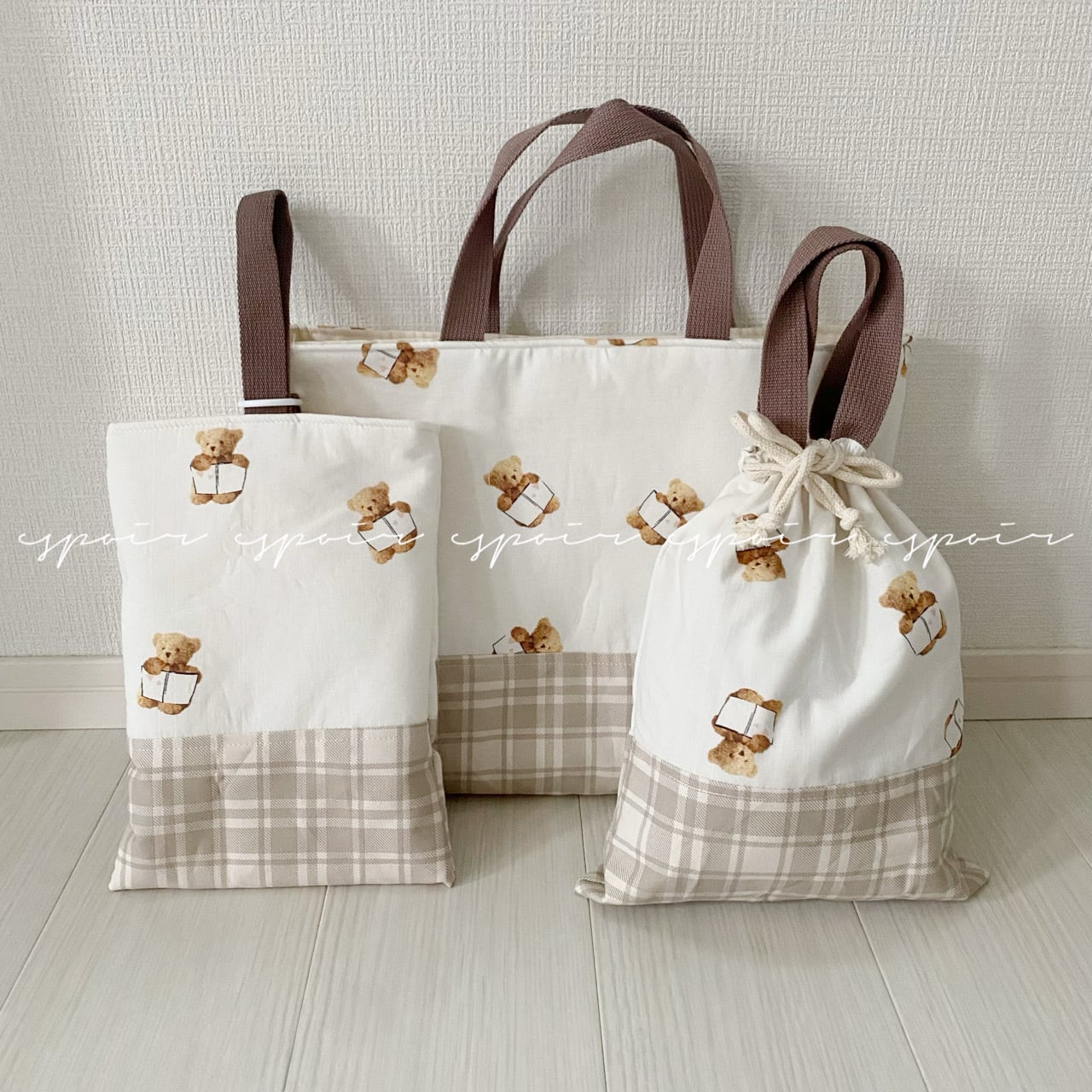 【送料無料】入園入学3点セット(本とくま・チェック)