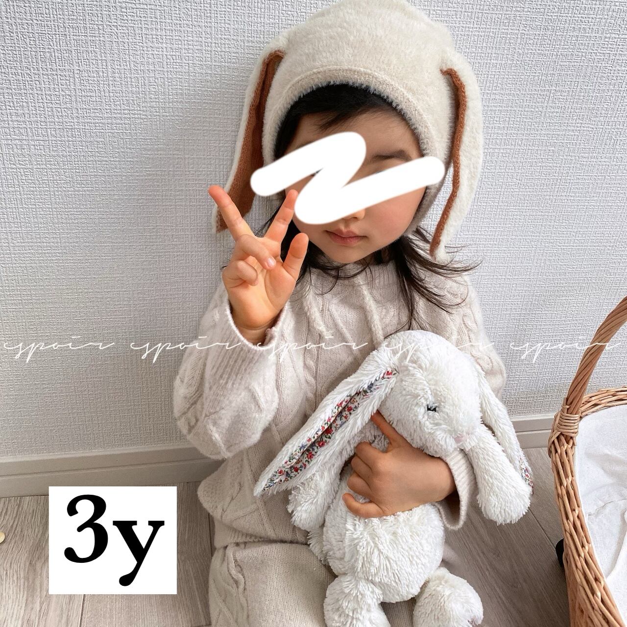お揃いでも可愛いくすみカラーのうさぎ耳ニット帽です。