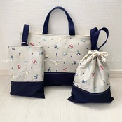 入園入学/シューズバッグ/靴入れ/上履き入れ/はたらくくるまグレー×ネイビー